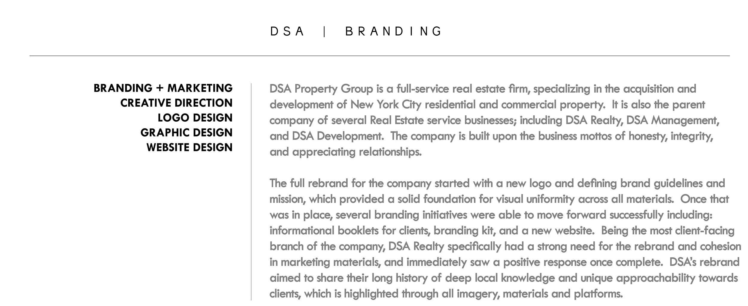 “ At DSA, we recognize that real estate is more than bricks and money. We understand that the transforming landscape of the City is the ongoing result of human dreams and aspirations. ”